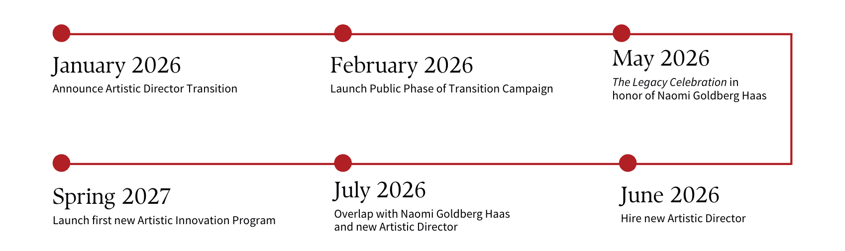 After more than two decades of visionary leadership, Naomi Goldberg Haas is transitioning into the role of Artistic Director Emerita. This moment represents both a celebration of her extraordinary impact and an opportunity to strengthen DVP for the future.